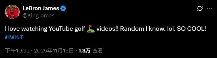 Tóm tắt:Hôm nay, James đã cập nhật Twitter cá nhân của mình. James đã viết: Tôi thích xem video về gôn trên