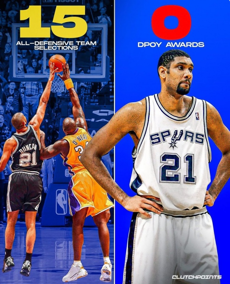 Gần đây, cựu cầu thủ NBA Robert Horry đã nói về Duncan không bao giờ giành được cầu thủ phòng thủ của năm trên podcast Big Shot Bob.