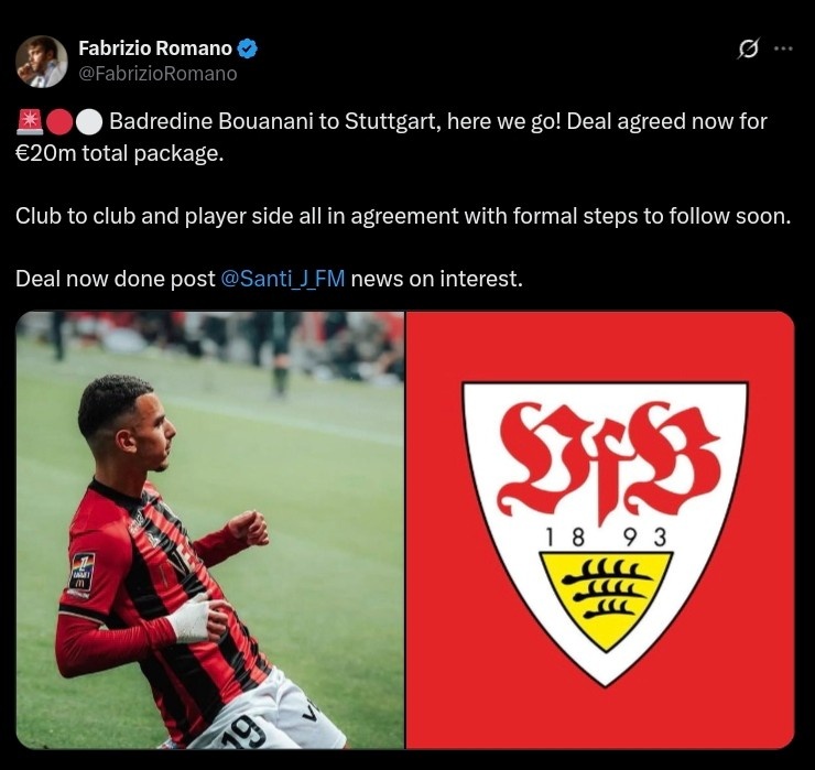 Theo chuyên gia chuyển nhượng nổi tiếng Romano, Stuttgart sẽ ký hợp đồng với tiền đạo 20 tuổi của Nice Buanani, ở đây chúng tôi đi!